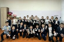 Под руководством учителя начальных классов обучающиеся сделали своими руками праздничную открытку. -