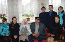 Җиденче класс укучылары БВ сугышы ветераны Бикатов Әхсән бабай белән Рәшидә әбинең хәлләрен белергә һәм Өлкәннәр көне белән котларга бардылар. Әхсән бабай белән Рәшидә әби, гадәттәгечә, укучылар килүенә бик шатландылар, үзләренә булган игътибар өчен рәхмәтләрен әйттеләр.