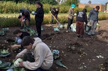 На субботнике по сбору урожая участвовали обучающиеся и учителя.