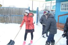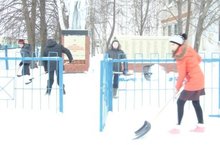 Учащиеся очищают двор от снега у ветерана тыла Салиховой М.