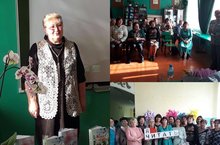 В день учителя,старшие классы преподнесли цветы и символичные подарки,а также организовали праздничный концерт в клубе. -