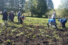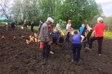 Сегодня в нашей школе была организованна посадка картофеля. Все учащиеся и учителя добросовестно работали на пришкольном участке.