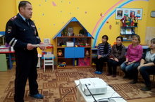29 октября 2015г. в МБДОУ д/с "Лэйсэн" в предверии осенних каникул прошли групповые родительские собрания. В для родителей воспитанников старшей группе "Тамчыкай"- "Капелька" выступил начальник ОГИБДД МВД России по Тукаевскому району Ганиев Ш.М. с докладом "Профилактика дорожно-транспортных проишествий." Шамиль Мирсаитович рассказал родителям о том как важно во избежание насчастного случая посадить ребенка в детское кресло и пристегивать ремнями безопасности при движении автомобиля по проезжей части. Также Шамиль Мирсаитович отметил о скоростном режиме водителей и о езде в темное время суток при минимальной видимости. Родители внимательно слушали выступающего.