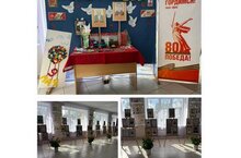 Учащиеся и учителя разместили портреты своих прадедов-героев Великой Отечественной войны и тружеников тыла в холле школы.