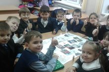 Учащиеся 1г класса делают плакат ко Дню Матери "Улыбка мамы" 21.11.2017