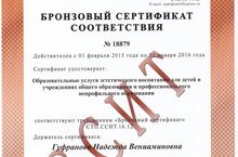Бронзовый сертификат 07.03.2015