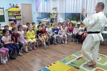 Тренер-преподаватель по каратэ МБОУ дополнительного образования детей "Детско-юношеская спортивная школа единоборств "Кэмпо", родитель, одной из воспитанниц д.с "Колосок", провёл содержательную и интересную беседу, показал мастер - класс детям о спорте!