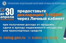 «Граждане, получившие доходы от продажи или получения в дар имущества, а также сдачи имущества в аренду обязаны до 30 апреля представить декларацию 3-НДФЛ. Подробнее на сайте nalog.gov.ru».