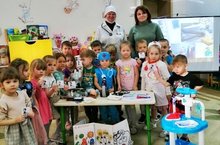 Сегодня для детей средней группы показали открытое занятие, также познакомили с профессией врача. В этом нам помогла бабушка, фельдшер Плеханова Татьяна Ивановна.