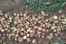 На пришкольном участке собирали лук.