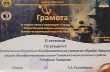 Наша школьная команда участвовала в межрегиональном конкурсе "На пути к Победе" и стала призером (2 место) в номинации "Города Герои". Руководитель Калимуллин Ф.Г.