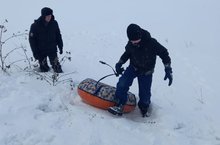 Родители со своими детьми отдыхают на природе во время зимних каникул.