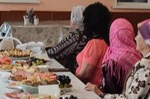 В столовой школы собрались пожилые люди. Среди них были и пенсионеры проработавшие в школе.
