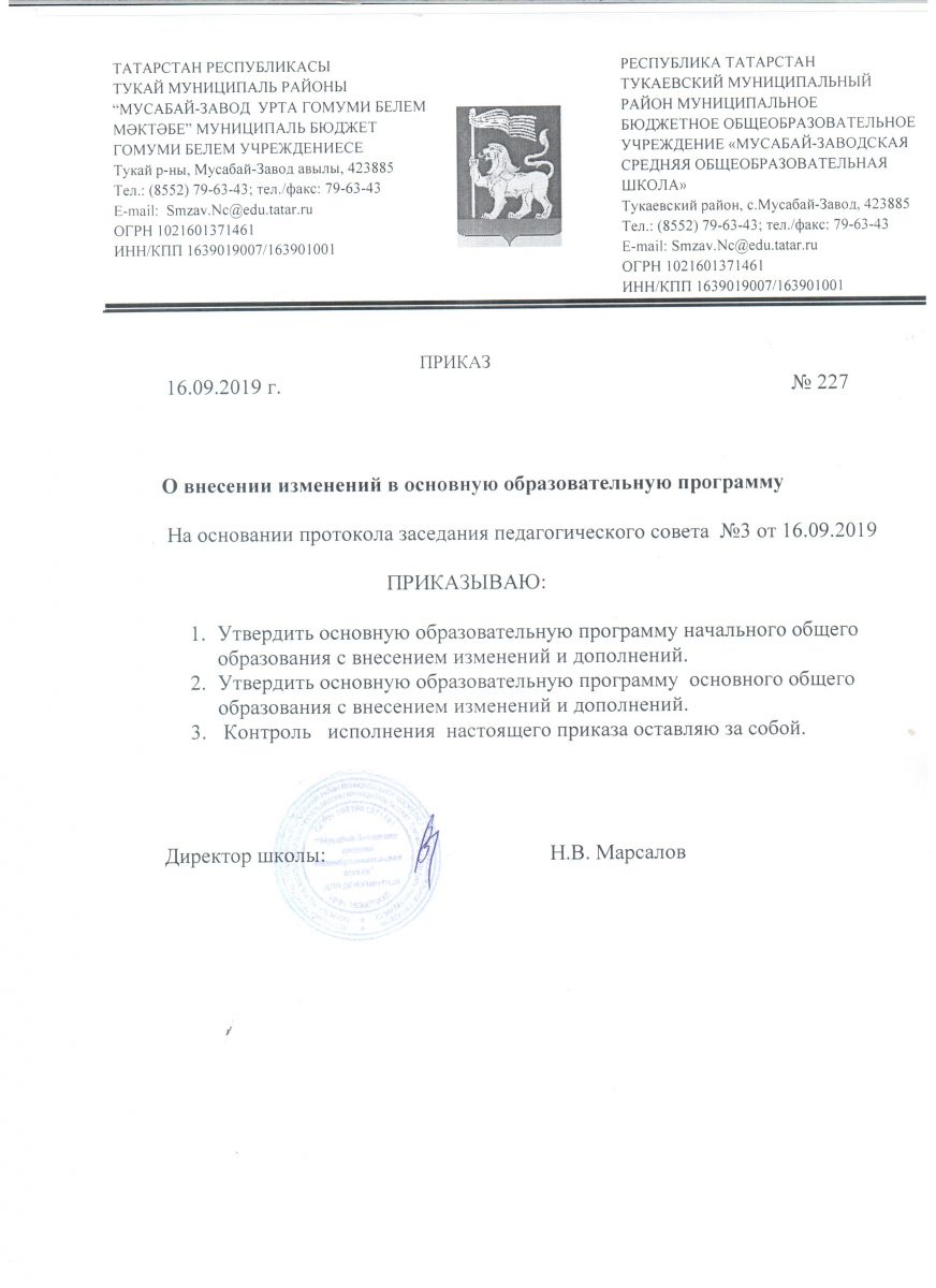 Приказ о внесении изменений в ООП НОО и ООП ООО
