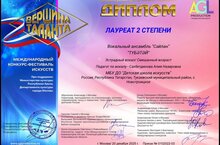 Поздравляем вокальный ансамбль «Сейлен» с победой на международном конкурсе-фестивале искусств «Вершина таланта»