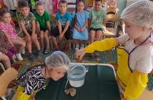 В рамках проведения мероприятий "Часы науки" подготовительная группа МБДОУ "Милэшкэй" сегодня экспериментировала с водой, в результате экспериментов дошкольники узнали свойства воды: "вода - жидкость", "вода - прозрачная", "у воды нет цвета и нет запаха", "плавучесть предметов в воде" и др.