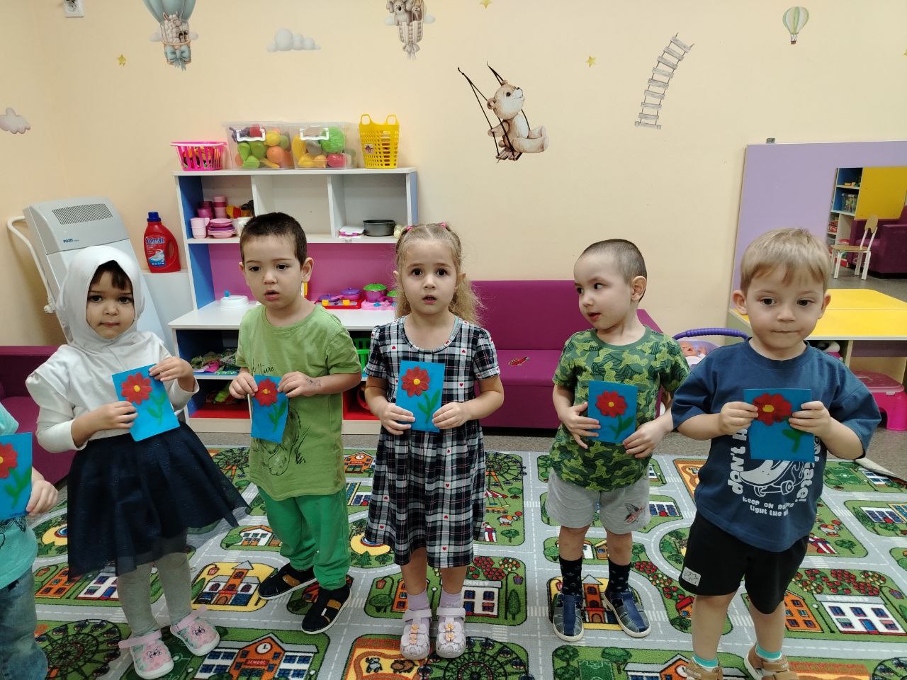 Каждая возрастная группа подготовила свое поздравление в виде творческих работ в разных техниках. Так же совместно с музыкальным руководителем подготовили поздравительную видео открытку.