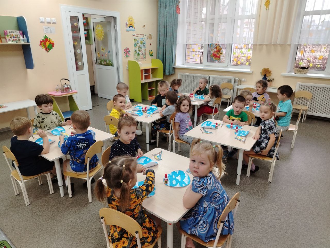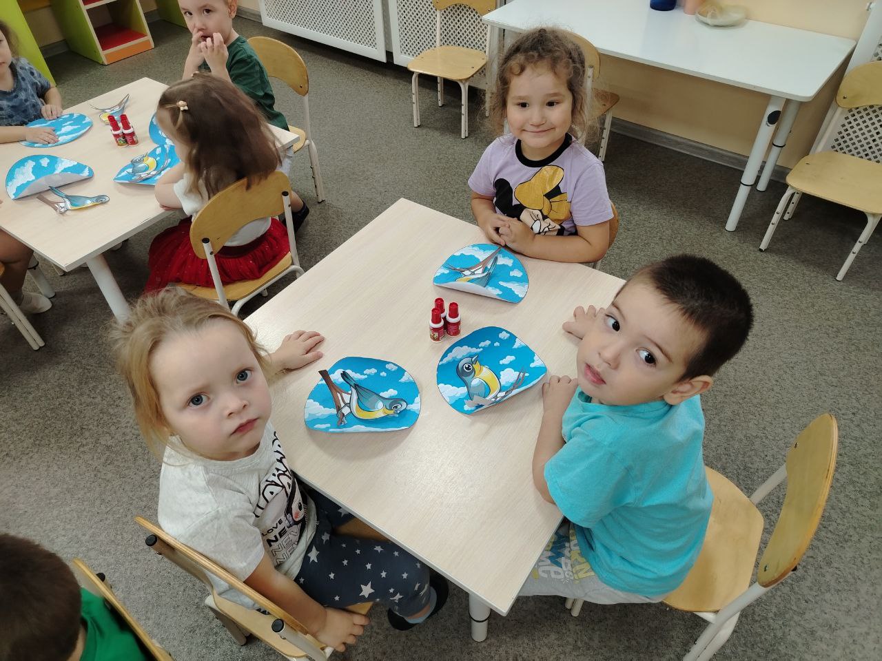 Ребята выполнили творческую работу из бумаги и картона приклеивая этих прекрасных, маленьких птичек!