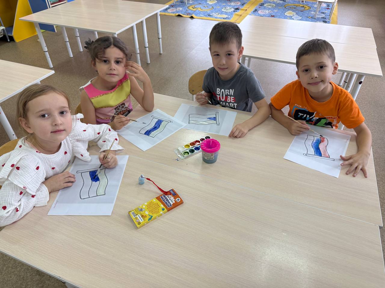 В конце занятия,ребята с большим удовольствием раскрашивали символ России, дружбы и мира.