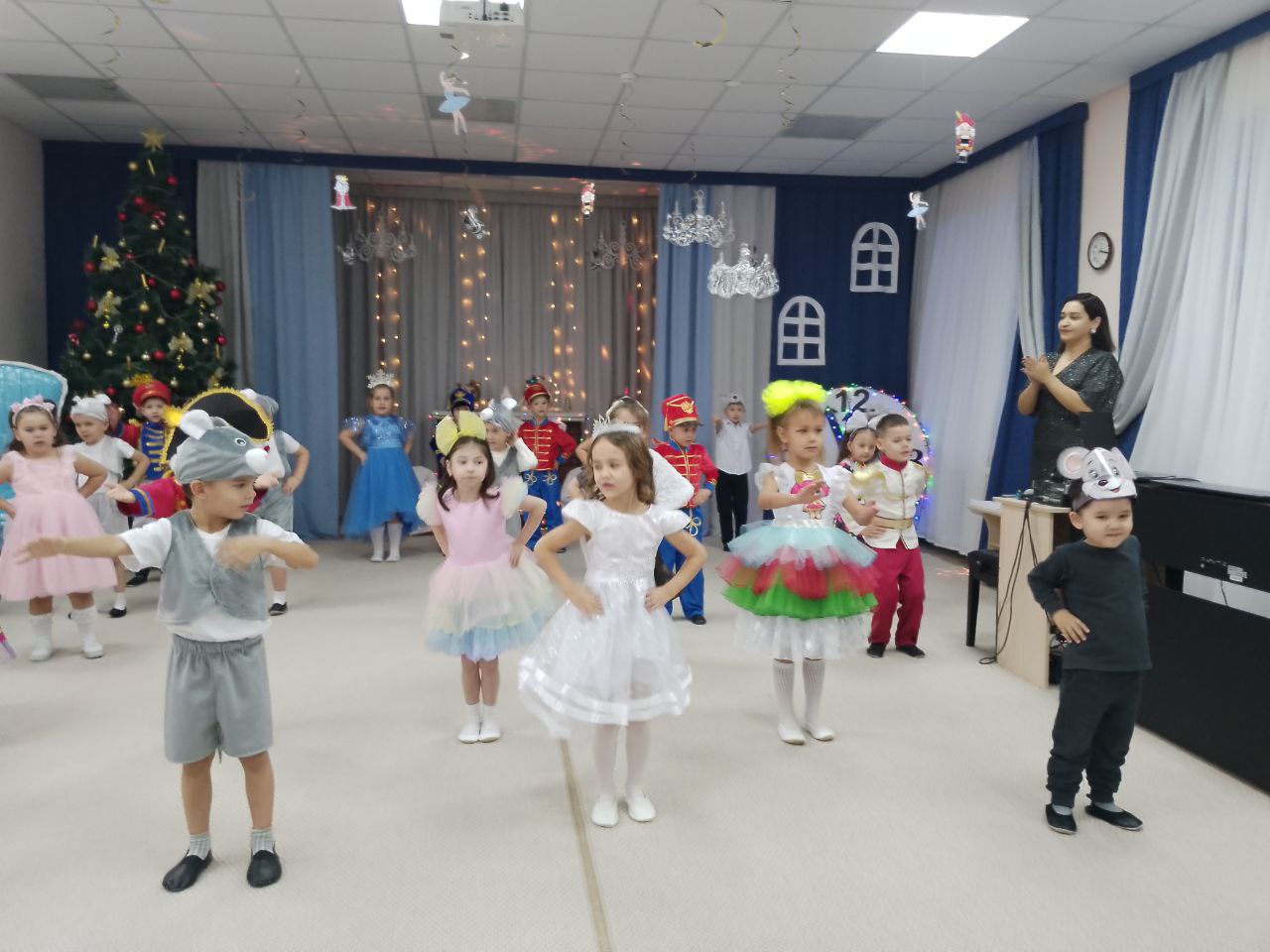 На протяжении нескольких недель дети готовились к этому событию: разучивали песни, танцы, репетировали сценки и движения. Сюжет сказки был адаптирован для детского восприятия, и наши маленькие актеры с энтузиазмом вжились в образы героев: храброго Щелкунчика, озорных мышат, Мари и Франца, оловянных солдатиков,кукол и снежинок, доброй Феи и других персонажей.
