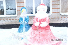 Һәр елдагыча быел да мәктәп алдын укучылар тарафыннан кардан ясалган фигуралар бизи.