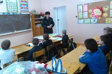В начальных классах проводились классные часы на тему: "Безопасное поведение детей во время новогодних мероприятий и в период зимних каникул" с участием сотрудника полиции Ишмакаева Р.А.