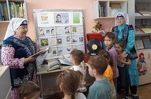 Школьный библиотекарь Хайруллина Р.М. и сельский библиотекарь Исхакова А.А. провели для детей дошкольной группы и младших классов познавательное мероприятие "Без Тукай оныклары".