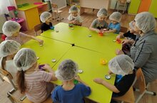 5 февраля дети разновозрастной младше-средней группы провели эксперимент «Таянье льда». В формочках заморозили воду, лёд посыпали солью. Наблюдали — соль разъедает лёд, проделывая канавки и ходы.