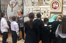 Далее обучающихся 1-4 классов ждал урок мужества у стенда «Герои спецоперации». Учитель начальных классов Харисова Э.К. рассказала ребятам, что её сын на данный момент находится на СВО, все, кто сейчас защищает нашу страну - настоящие Герои. Для учащихся 5-8 классов Ахметшина Ч.А. провела патриотический час ко Дню Героев Отечества с показом небольших видео, посвященных этому Дню. С 9-классниками была проведена игра - интеллектуальное лото «Герои моего Отечества» на знание некоторых конкретных фактов касательно этого Дня.
