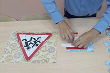 Идет месячник безопасности. Во всех классах проходят классные часы, викторины, посвященные безопасности жизнедеятельности детей. Классный руководитель Гильмиярова И.Э. с учениками 5 класса провела викторину на знание правил дорожного движения. В конце занятия дети собрали пазлы со знаками