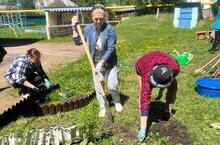 Сегодня работники нашего детского сад "Лебёдушка" с удовольствием посадили огород!