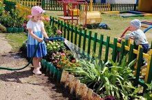 Цветочные клумбы на территории детского сада дают не только возможность ухаживать и наблюдать за цветами, но и создают хорошее настроение детям, родителям и работникам учреждения. -