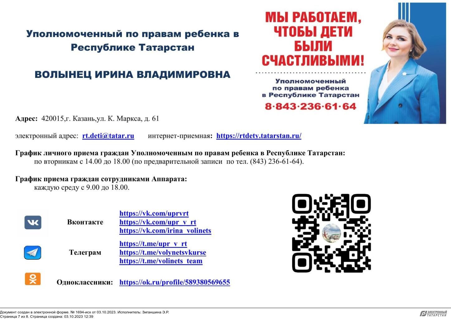 Уполномоченный по правам ребенка в Республике Татарстан