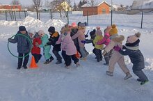 Сегодня педагоги организовали для ребятишек «Зимние забавы». Ребята активно участвовали в конкурсах, эстафетах. Детям пришлось состязаться на скорость, ловкость, выносливость, смекалку. И они справились.Взаимодействуя друг с другом, ребята начинают понимать, что такое дружба, потому что веселые игры сближают, формируют командный дух. Такие развлечения помогают вызвать у детей желание двигаться, заниматься спортом, в игровой форме развивать физические качества.