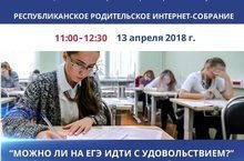 13 апреля состоится республиканское родительское интернет-собрание на тему «Можно ли на ЕГЭ идти с удовольствием?» (Об эффективных методиках подготовки детей и подростков к аттестации знаний).