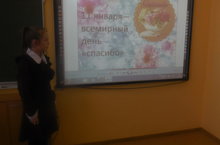 11нче гыйнвар - Рәхмәт көне!Шушы кечкенә генә сүздә күпме мәгънә, хисләр яшеренгән. Бала вакыттан ук беренче эш итеп рәхмәтле булырга өйрәтәләр. Бүгенге тәрбия сәгате дә әлеге темага багышланды. Әйдәгез,бу көнне без дә бер –беребезгә “җылы сүзләр” генә әйтик. Салкын көннәрдә бер-беребезнең җаннарын әлеге сүә белән җылытыйк. // 11 января – Международный день «СПАСИБО». У каждого человека в жизни есть люди, которым хочется сказать слово “СПАСИБО!” В первую очередь это нашим родителям, за их заботу о нас, друзьям за то, что они рядом в трудную минуту.