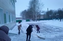 Наши ученики активно помогают школе по хозяйственной работе. Из-за сильного бурана территорию школы занесло снегом, утром юноши 8-11 классоов помогают в уборке снега.
