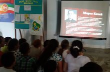 17июньдә мәктәп яны лагерында ял итүче балалар белән Дәүләт Эрмитажының 250- еллыгына багышлап әңгәмә үткәрелде. Аларга Эрмитаж турында презентация күрсәтелде,төрле картиналар күрсәтелде. Соңыннан укучылар үзләре дә әлеге эрмитажны чагылдырган максаты балаларнын иҗади мөмкинлекләрен үстерү; туган илгә мәхәббәт тәрбияләү булган рәсем конкурсында катнаштыларлар.