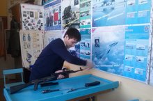 В школе продолжается Военно-патриотический месячник, сегодня начались соревнования по отжиманию, по сбору автомата. Каждый ученик начиная с 5 класса делает отжимания, у кого-то очень хорошо получается , а у кого-то не очень, но никто не остается без участия. Юноши 7-11 классов пробуют разбирать и собирать автомат на время.