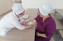 В рамках мероприятий, посвященное Всемирному дню охраны труда, школьная медицинская сестра Тимербаева Сирина Фанисовна провела тренировочные мероприятия по оказанию первой помощи среди работников столовой. Она показала как правильно наложить жгут, какие действия предпринять при ожоге.