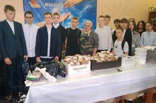 Солдат егетләребезгә Теләче урта мәктәбе укучылары даими рәвештә ярдәм итеп торалар. Бүген Теләченең 8 а сыйныфы укучылары, (класс җитәкчеләре Елена Яковлевна)Теләче районында урнашкан штаб эшчәнлеге белән танышырга килделәр. Алар җиңүнең 80 еллыгы уңаеннан солдат егетләребезгә 80 пар носки алып килделәр.