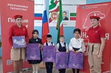 Члены юнармейского отряда приняли первоклассников в ряды детского движения "Орлята России"