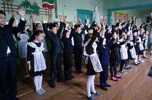 В рамках недели добра в школе организовали флешмоб под названием "Мы вместе", "Без бергә"
