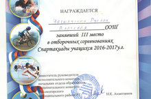 Ученик 9 класса Насыбуллин Руслан занял 3 место в отборочных соревнованиях Спартакиады учащихся.Желаем ему дальнейших успехов. -