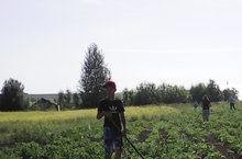 Мәктәп бакчасында эшләр гөрли. Бүген мәктәп күләмендә укучылар һәм укытучылар бәрәңге чүбен утадылар. Балалар бик тырышып эшләделәр.