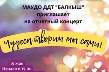 Традиционно отчетный концерт Дома творчества проходит под девизом "Чудеса творим мы сами!" Обучающиеся- юные артисты украсили праздник своим творчеством, вокальным исполнением, танцами и литературным мастерством.