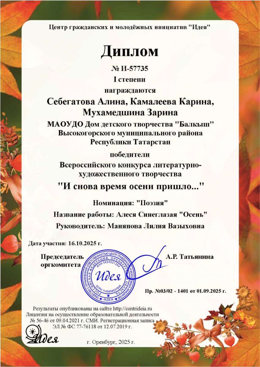 Муниципальное автономное образовательное учреждение дополнительного образования Дом детского творчества «Балкыш» Высокогорского муниципального района РТ