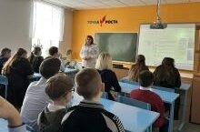 Затем они посмотрели видеоролик «Об отрасли», из которого узнали о цифровой инфраструктуре России, о том, почему безопасность связи является приоритетной задачей, и о том, какие специалисты востребованы в этой сфере.