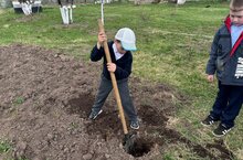 Балалар мәктәп яны участогына карлыган (кызыл, кара) һәм алмагач утырттылар.