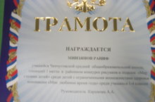 Поздравляем ученика 2 класса Минзянова Ранифа, занявшего 1 место в районном конкурсе рисунков "Мир глазами детей"